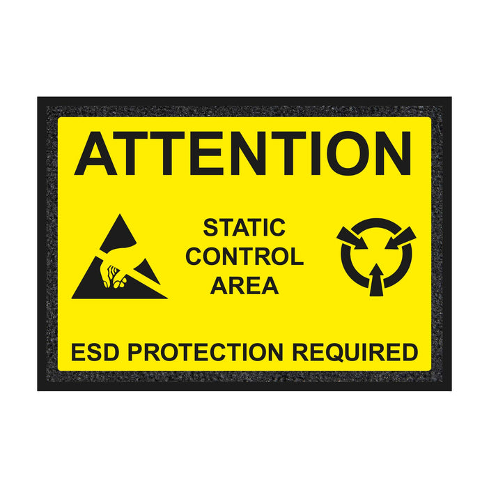 A durable mat with highly visible "Static Control ESD Protection" safety message and graphic, reminding people to take care. High twist nylon surface on a 100 % Nitrile EXSTM Rubber, resistant to chemicals, greases and oils. Increases safety in your facility. Download full technical data sheet.
