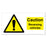 Our Caution Reversing Safety sign is a warning category sign conforming to the BS5499 standard. These health and safety signs are required by the Health and Safety (Safety Signs and Signals) Regulations 1996. A warning sign will appear as a black banded, yellow, equilateral triangle with the type of hazard picture in black, positioned centrally on the sign.