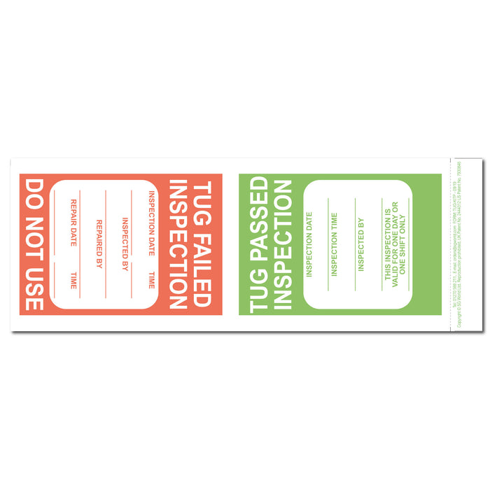 Before every shift, the operator of the tug can simply work down the inspection checklist, checking the safety of each component in turn. This simple procedure helps you to comply with the Provision & Use of Work Equipment Regulations 1998 (commonly referred to as PUWER) that state all work equipment must be maintained and be safe to do the job for which it is intended. Once the inspection is complete, assuming safety has been established, the inspection certificate can be placed inside a safety status indicator on the tug ensuring that every employee can clearly see that the tug is safe for use. Failing tugs can be similarly identified and handed over for maintenance. The duplicate copy of the certificate remains inside the inspection pad and can be used as evidence of inspections should you ever need to produce this for the HSE or other official parties.
