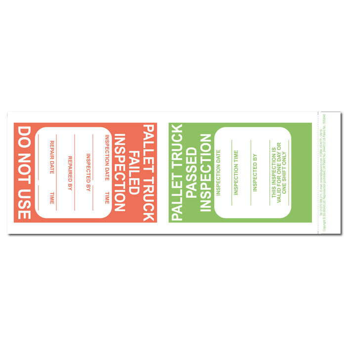 Before every shift, the operator of the truck can simply work down the inspection checklist, checking the safety of each component in turn. Once the inspection is complete, assuming safety has been established, the green PASS inspection certificate can be placed inside a safety status indicator on the truck ensuring that everyone can clearly see that the truck is safe for use. Failing trucks can be similarly identified by a red FAIL certificate and reported for maintenance. The duplicate copy of the certificate remains inside the inspection pad and can be used as evidence of inspections should you ever need to produce this for the HSE or other official parties.