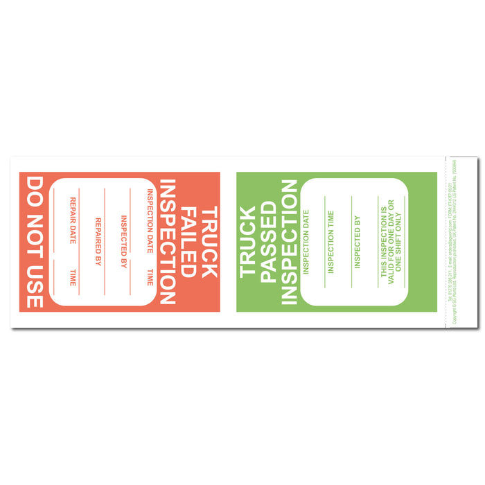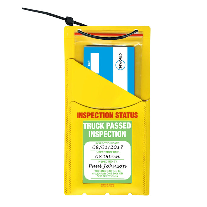 Before every shift, the operator of the truck can simply work down the inspection checklist, checking the safety of each component in turn. Once the inspection is complete, assuming safety has been established, the green PASS inspection certificate can be placed inside a safety status indicator on the truck ensuring that everyone can clearly see that the truck is safe for use. Failing trucks can be similarly identified by a red FAIL certificate and reported for maintenance. The duplicate copy of the certificate remains inside the inspection pad and can be used as evidence of inspections should you ever need to produce this for the HSE or other official parties.