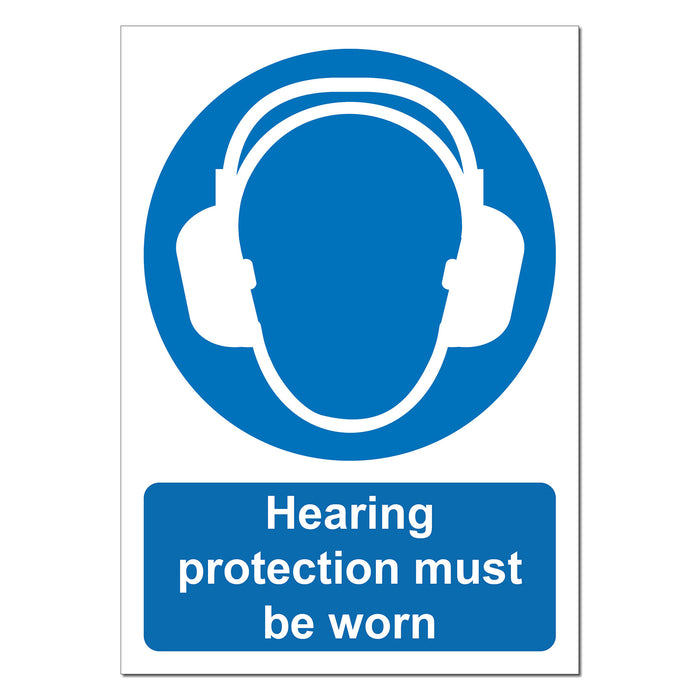 Our Hearing Protection safety sign is a mandatory category sign conforming to the BS5499 standard. These health and safety signs are required by the Health and Safety (Safety Signs and Signals) Regulations 1996.  A mandatory sign conveys information that you must comply with to be safe and will be blue, usually with a white symbol on a blue background. They are often used to communicate the requirement to use PPE.
