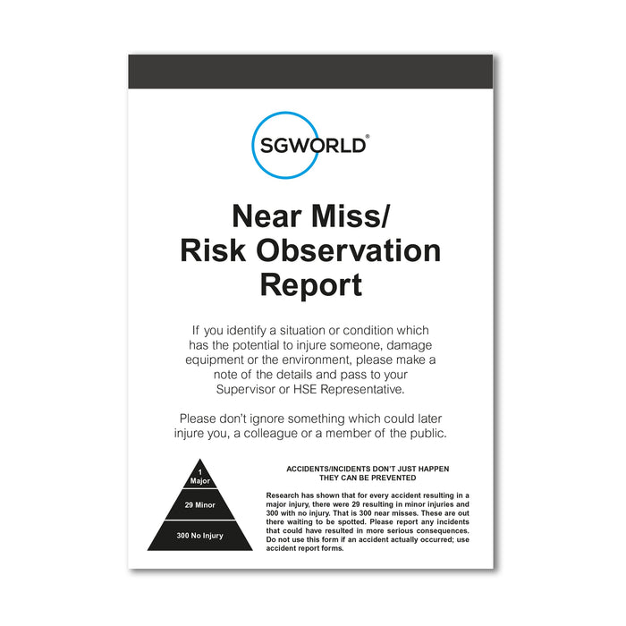 - 60-Page Pad: Each report pad provides ample space for documenting near misses.