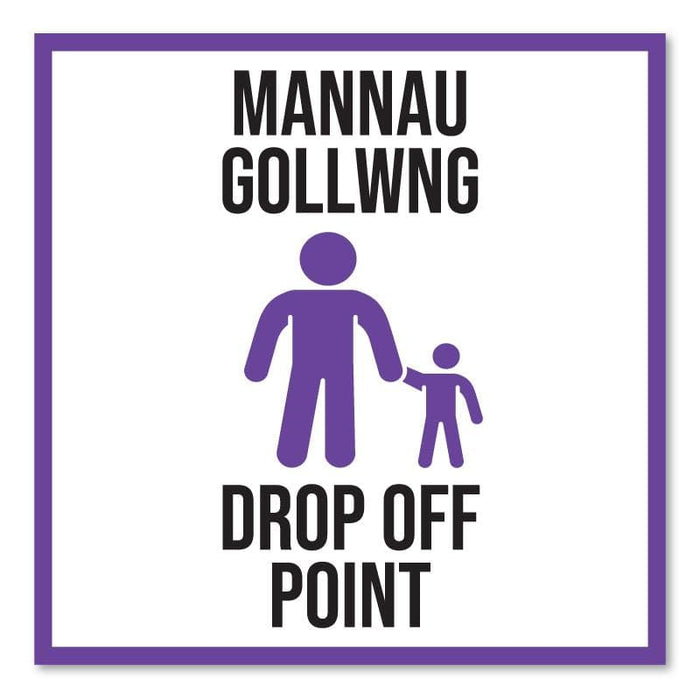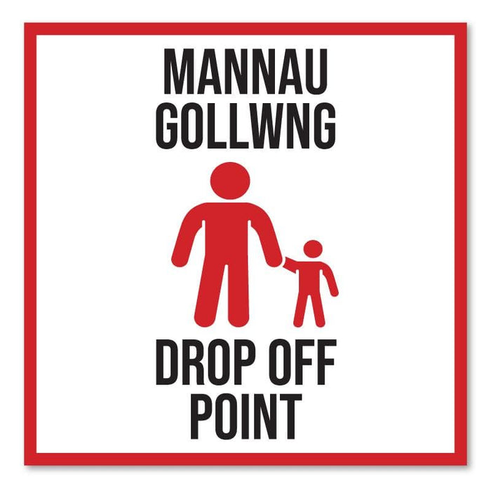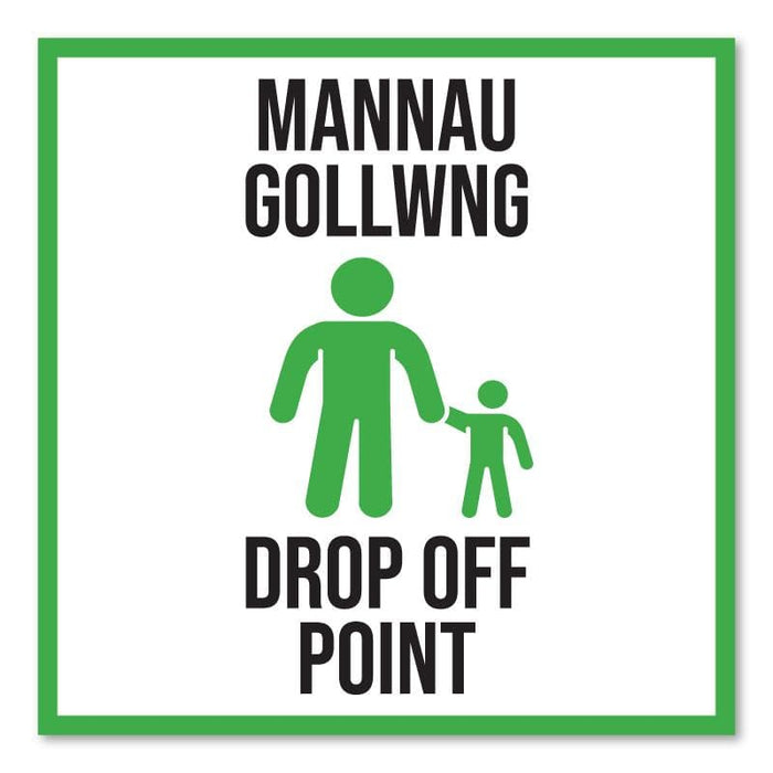 School Drop Off Point, Bilingual Welsh Outdoor Floor Signage, 60cm X 60cm